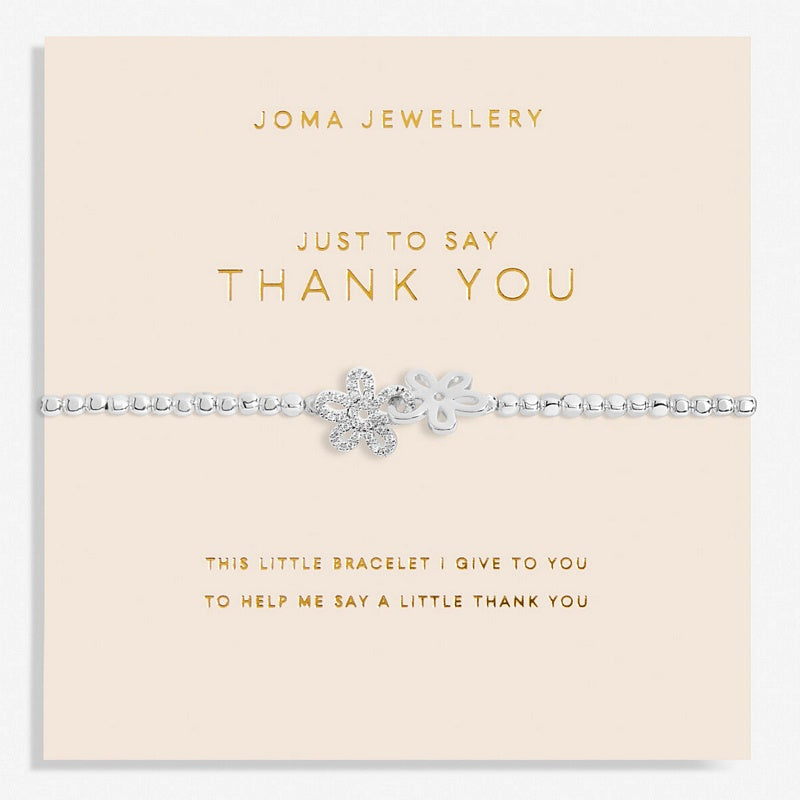 Show your gratitude with the 'Just To Say Thank You' bracelet! Joma Jewellery has crafted an elegant silver bead stretch bracelet featuring two intertwined silver flowers, one smooth and one sparkling with CZ crystals. This dazzling bracelet is perfect for showing appreciation for someone special!
