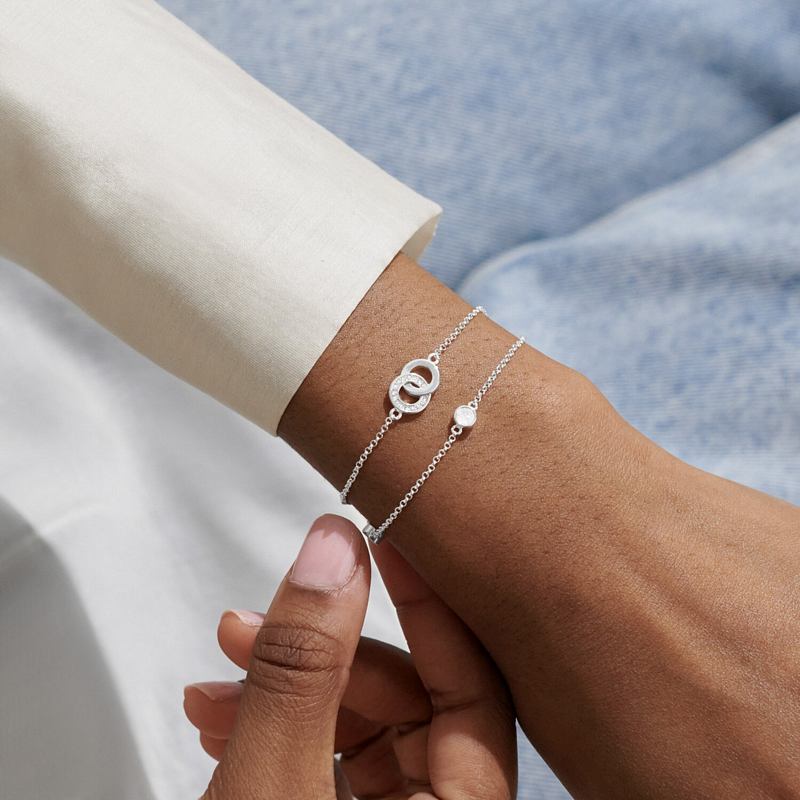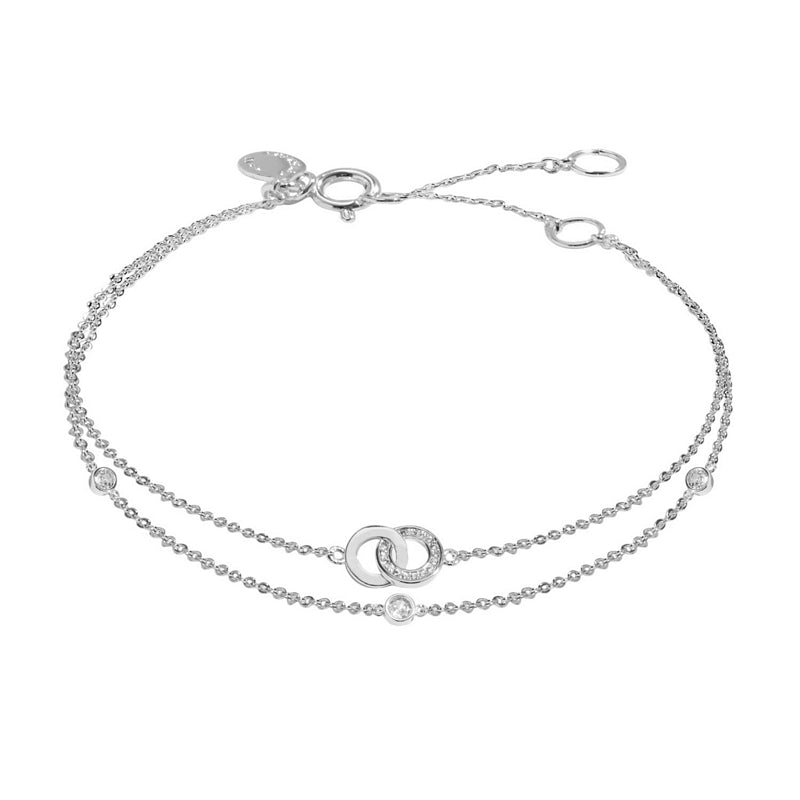 Discover the charming Lumia collection and elevate your look effortlessly! The Lumia Linked Circles Bracelet in silver plating is designed for easy layering, featuring delicate pavé details and a graceful linked circles charm. This elegant piece is a must-have addition to your jewellery collection this season.