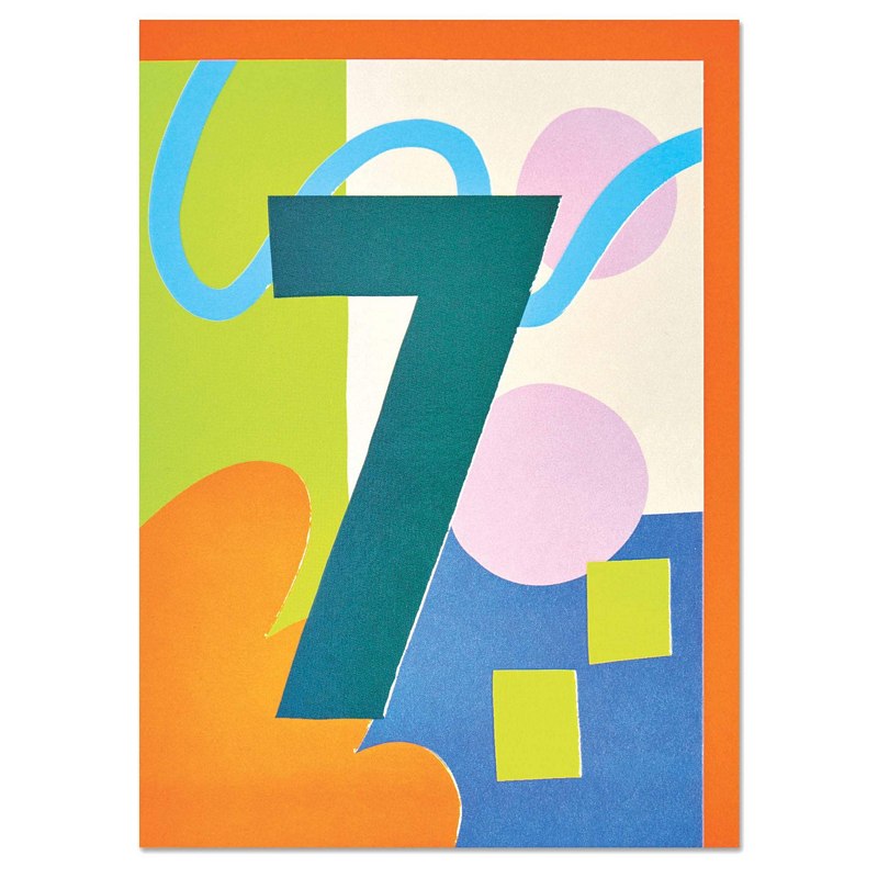 Get ready to party with this vibrant age 7 birthday card from Raspberry Blossom! Bursting with colourful abstract shapes and playful patterns, it's designed to delight any child turning seven.