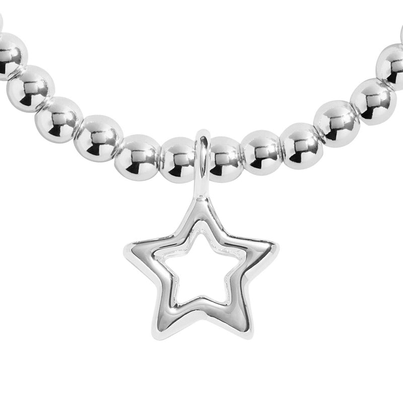 Presented in a starburst-print blush velvet Christmas stocking with a glittery ribbon tag, 'This Little Bracelet Is Just To Say, Happy Christmas To You Today'.