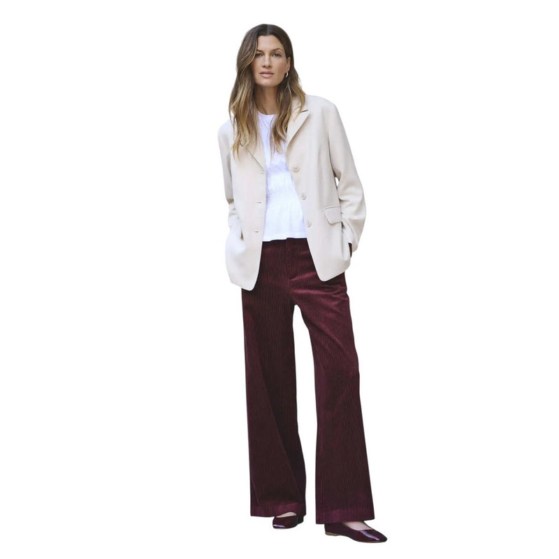 Step into cosy charm with the Clarissi Cord Trousers in Tawny Port from Part Two Clothing. These straight, slightly wide-leg, beauties, crafted from a soft cotton-rich corduroy, boast a regular waist, zip-fly, side pockets, and button closure for easy wear.