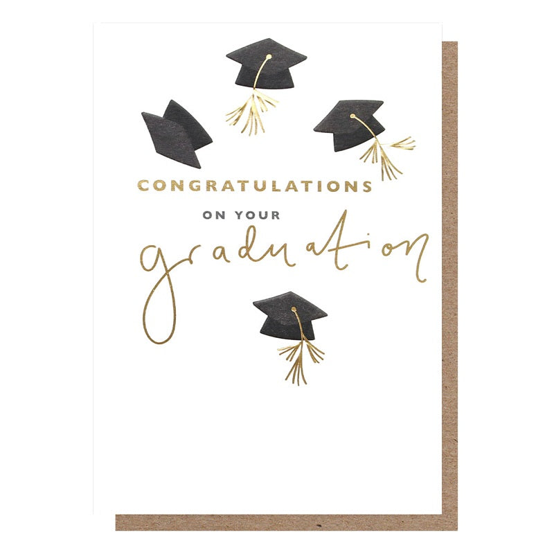 Let your stars celebrate their achievement with this congrats card! Filled with gold-tasselled mortarboards and gold foil print, it's the perfect way to say you're proud of them! (Plus, it's blank inside for your personalized congrats!)