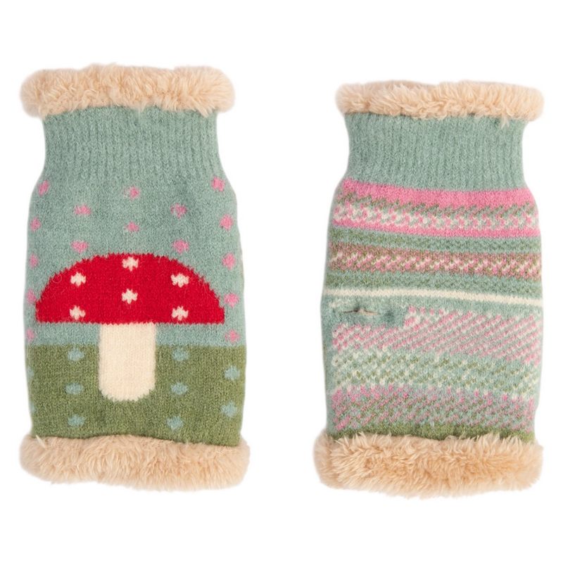 Step into an enchanted forest with these Cosy Wrist Warmers from Powder UK. Featuring bold red toadstools on an ice blue and green backdrop, they're a woodland daydream wrapped around your wrists.