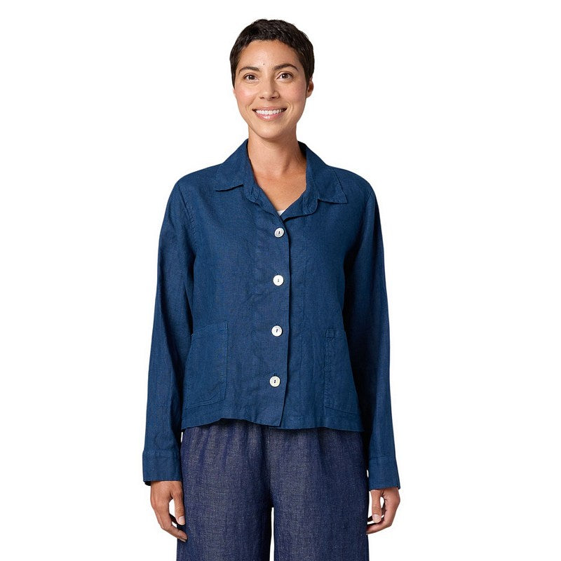 The relaxed fit hits right at the hip for a chic, modern silhouette that works beautifully over tees, tanks, or dresses. Button-front closure and a notched collar keep things polished, while 100% linen keeps you cool and comfortable. Pair it with jeans, skirts, or linen trousers for effortless spring and summer style.