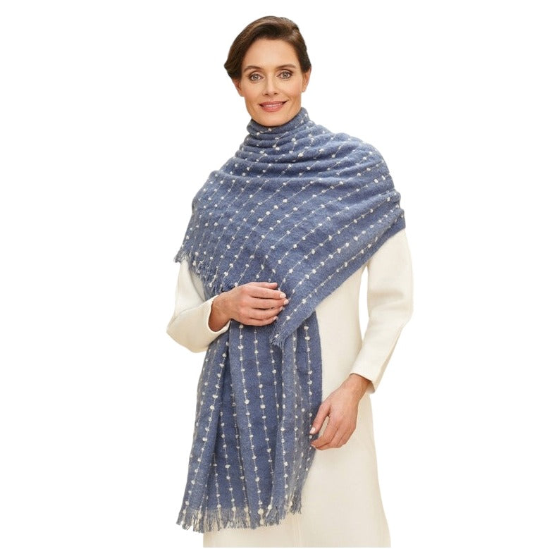 Indulge in the dreamy softness of the Dakota Cosy Scarf Denim from Powder Designs! The generous size makes it perfect for snuggling up in as a cosy wrap, while the denim blue colour and white dot design add a touch of playfulness. Stay warm and stylish with this gorgeous scarf!