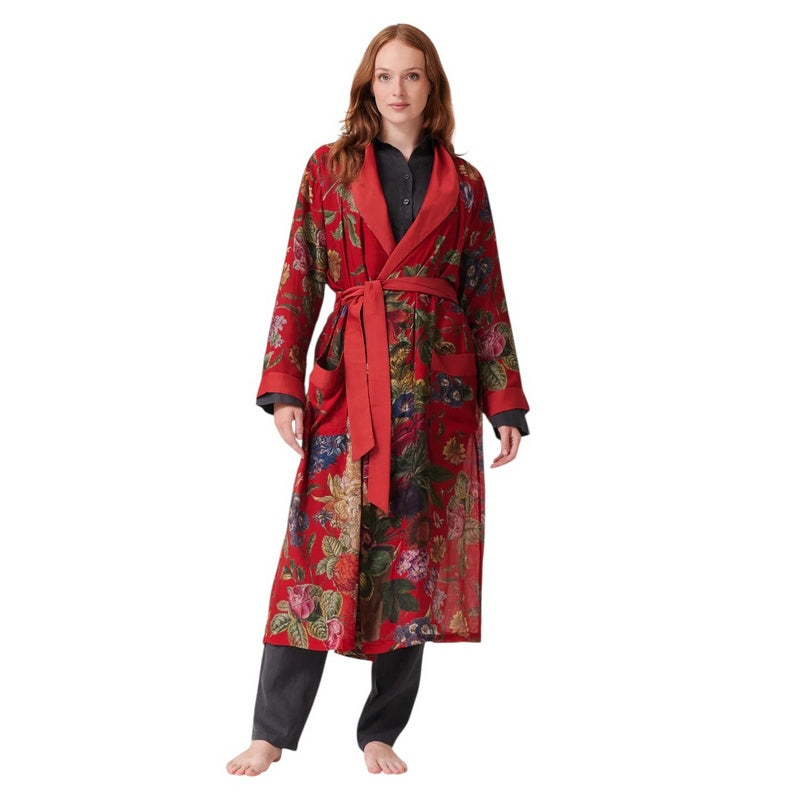 Slip into something sensational with this berry red dressing gown from One Hundred Stars. The Primula design bursts with a glorious garden of primroses, auriculas, and polyanthus flowers - a nod to the Dutch Old Masters that's utterly captivating.