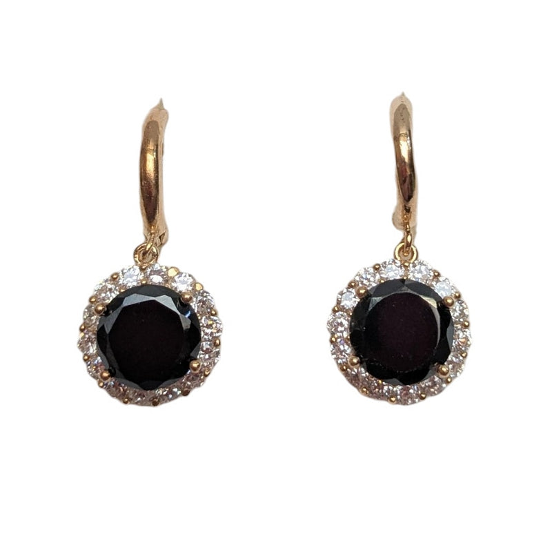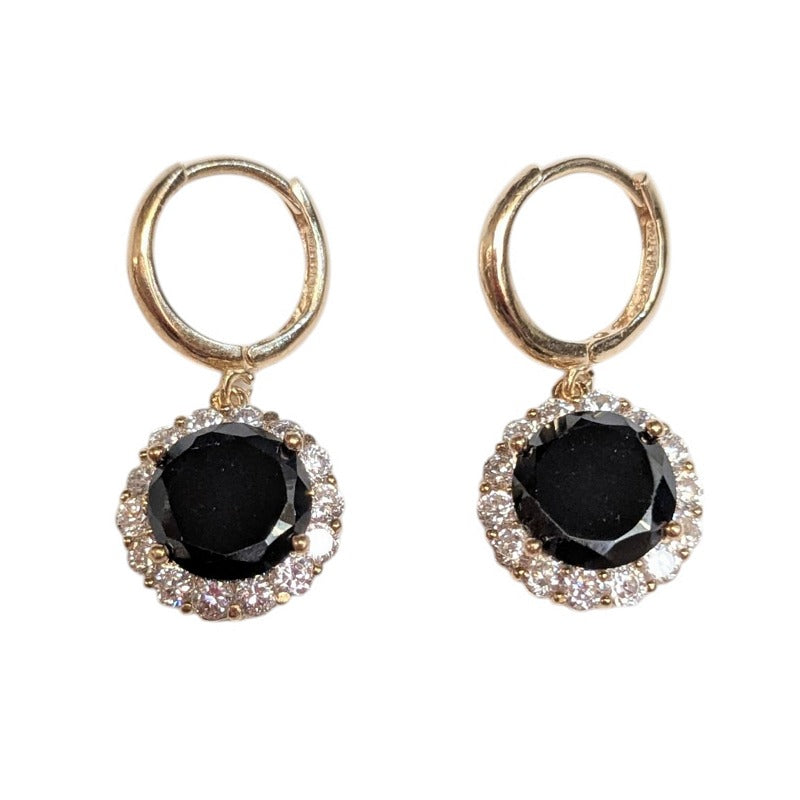 Add some bling to your ensemble with our Gold Plated Hoop Earrings featuring a CZ Cluster around a Black CZ Stone! These beauties are adorned with micro pavé cubic zirconia stones for a day-long sparkle and delight. The studs are filled with high-quality faceted stones, making them shine endlessly.