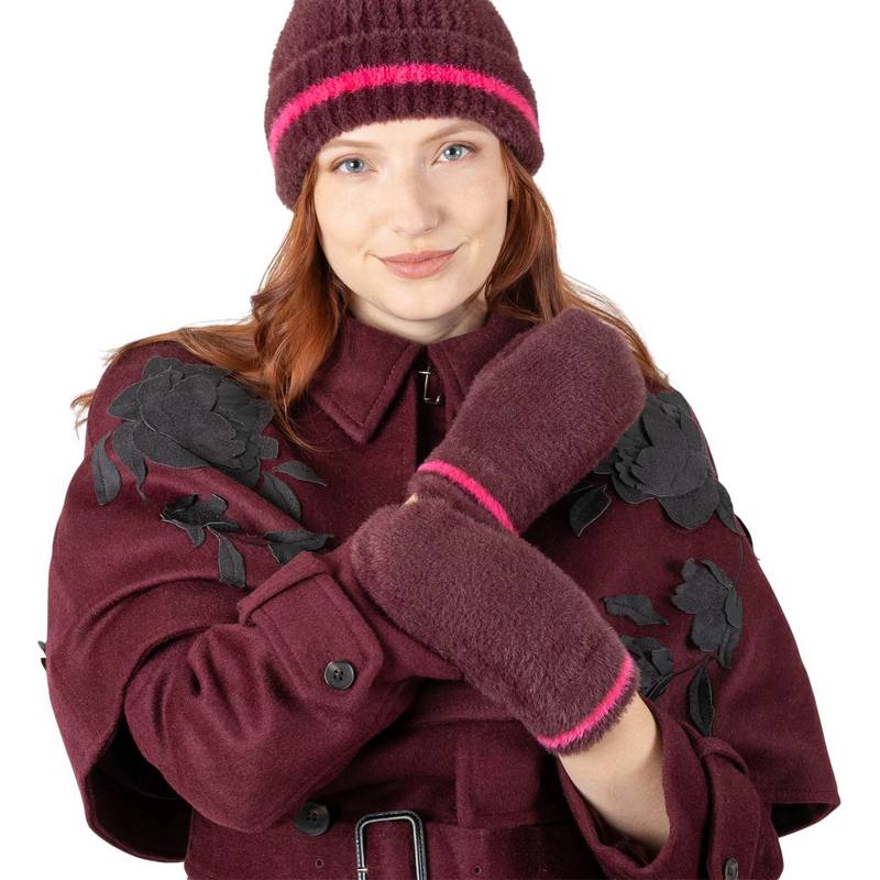 Snuggle up in style with these Feather Yarn Knitted Mittens, boasting a stunning Damson and Orchid colour combination. Made from feather-light yarn that feels like a gentle hug for your hands, they provide serious warmth without any of the weight. The playful striped cuff injects personality into your winter ensemble, while the generous relaxed fit makes them a breeze to pull on and wear all day long. For anyone who believes cold-weather accessories should be equal parts cosy and chic.