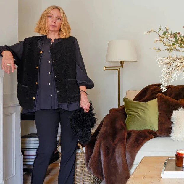Stay warm and stylish in the Gaby Gilet! This luxe black gilet features lush shearling-style finish, popper buttons, neat pockets, and a lined interior for toasty goodness. Upgrade any outfit with its subtle sophistication and snuggly texture - you'll feel cosy all day!