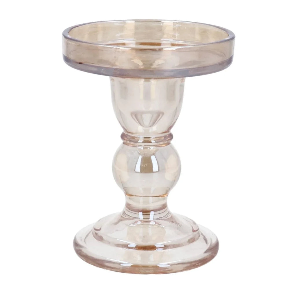 Illuminate your home with understated glamour using this Gold Lustre Glass Dual Candlestick. Crafted from substantial, heavyweight glass with a luxurious gold finish, this versatile beauty accommodates both pillar candles up to 7cm in diameter and standard dinner candles—giving you endless styling possibilities.