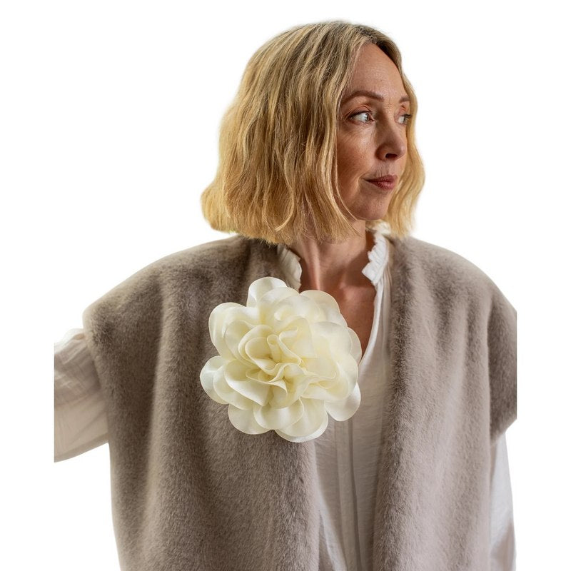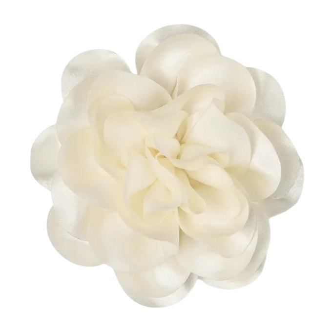 The Hove Flower Brooch in Ivory adds a playful splash of elegance to any outfit. Made from luxurious satin, this large flower makes a delightful statement for every occasion. Featuring both pin and clip backs, it stays securely in place while brightening up your look with a touch of whimsy.