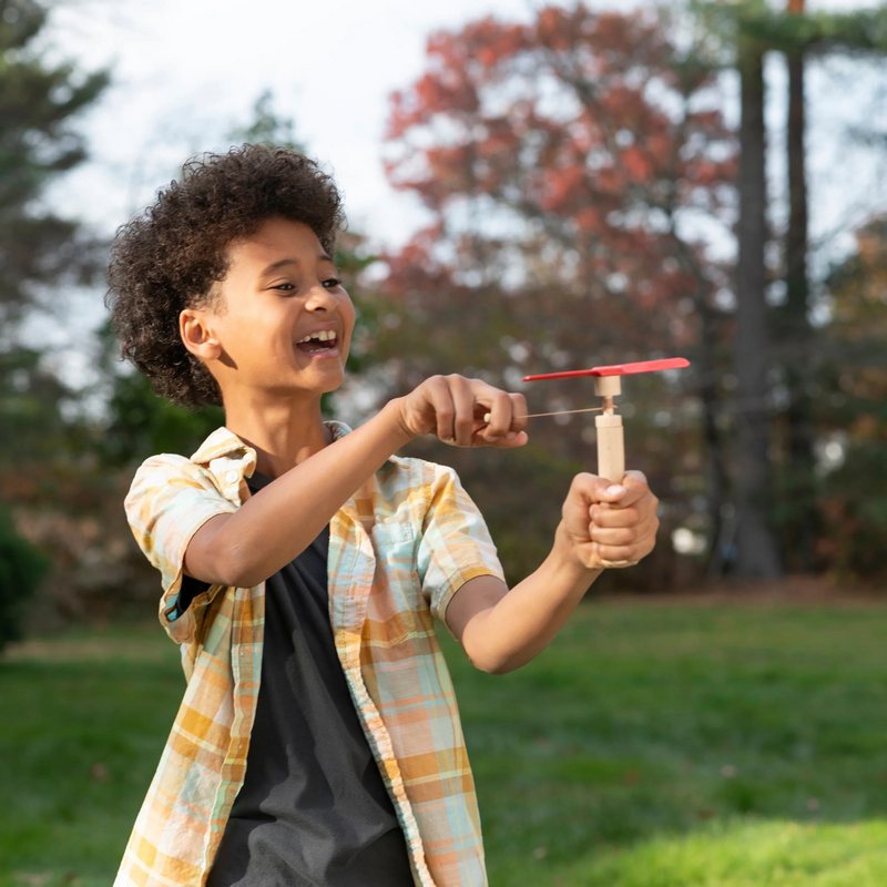 Experience the thrill of flight with the Huckleberry Pull Helicopter. Made from eco-friendly beechwood, bamboo, and string, this charming toy launches effortlessly—just wind the launcher clockwise and pull to set the helicopter soaring. Perfect for outdoor fun or sparking imaginative play, it combines classic design with engaging action, bringing endless excitement to kids and adults alike.