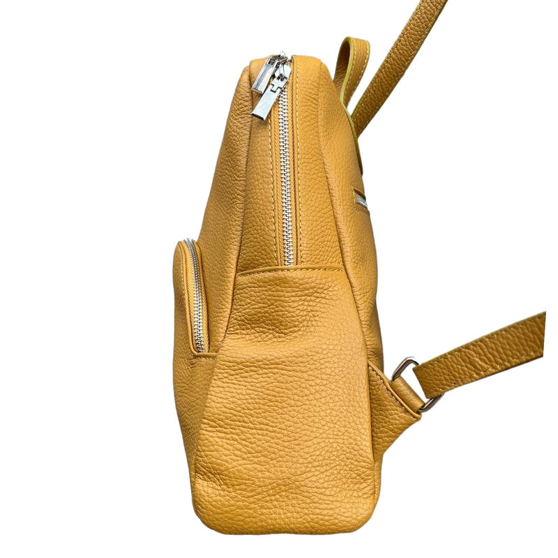 Get ready to take on the world in style with our Italian Leather Medium Backpack in Mustard! Made in Italy with soft and luxurious Mustard Yellow leather, this backpack is perfect for all your adventures. Fully lined and equipped with multiple pockets, adjustable shoulder straps, and a grab handle, it's both practical and chic.