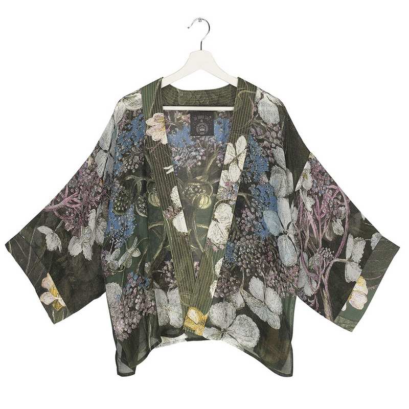 The Hydrangea painting used for this Kimono comes from the archive collection at the Royal Botanic Gardens Kew and if from the work of Marianne North. Marianne was a remarkable Victorian artist and botanist who travelled the world, breaking conventions and discovering new species of fauna and flora.
