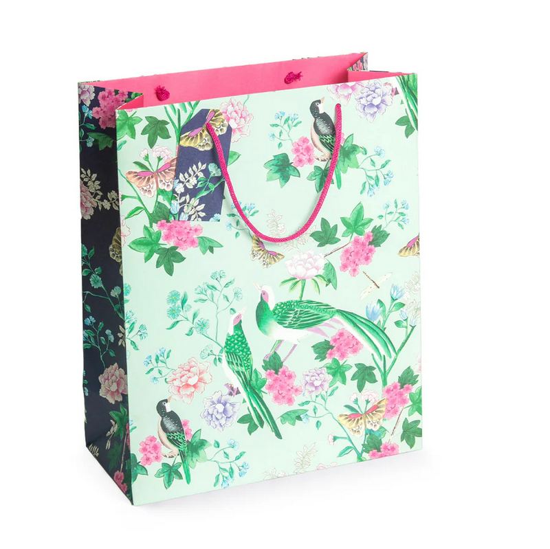 Make your gift even more meaningful by choosing this beautiful Chinoiserie Large Gift Bag. Adorned with vibrant flowers and birds, it includes pink paper handles and a die-cut tag for a thoughtful finishing touch.