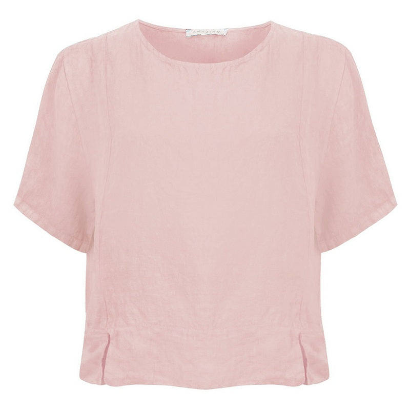Elevate your summer style with the Lucie Linen Short Sleeved Top in Rose Pink. This lightweight and comfortable top from Amazing Woman features a regular fit, cropped boxy shape, round neckline, and short sleeves.