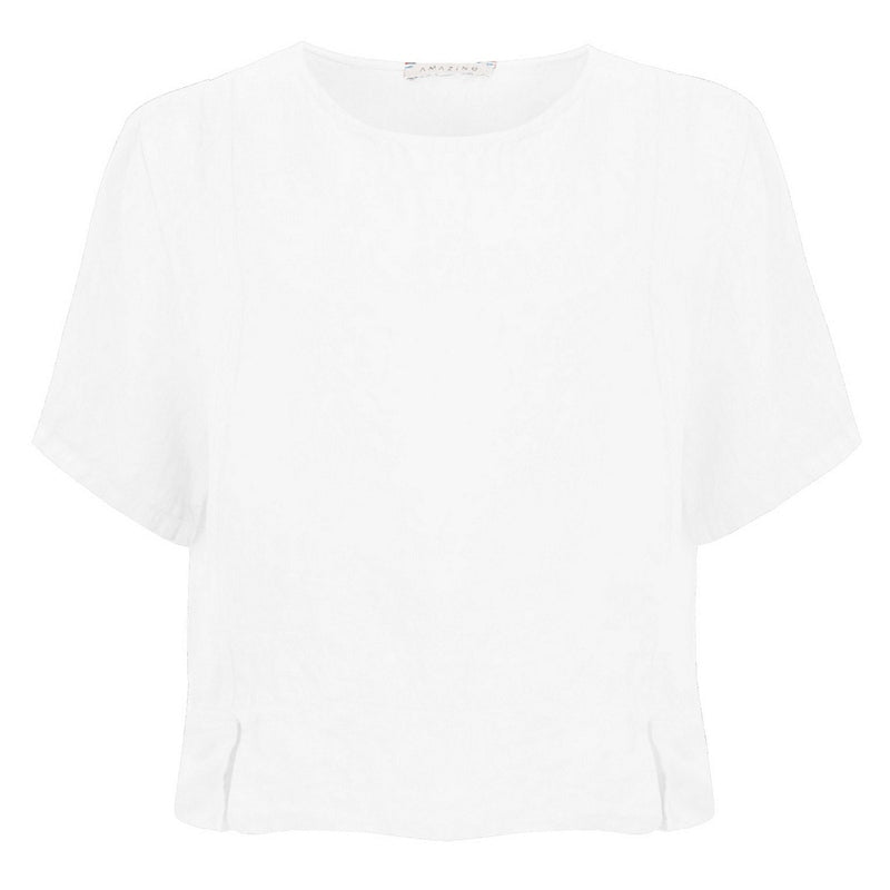 The Lucie Short Sleeved Top in White, from Amazing Woman, is made with lightweight, breathable linen. This top is perfect for staying cool and stylish this summer. Its regular fit, cropped boxy shape, and slit hem add a touch of chic versatility.