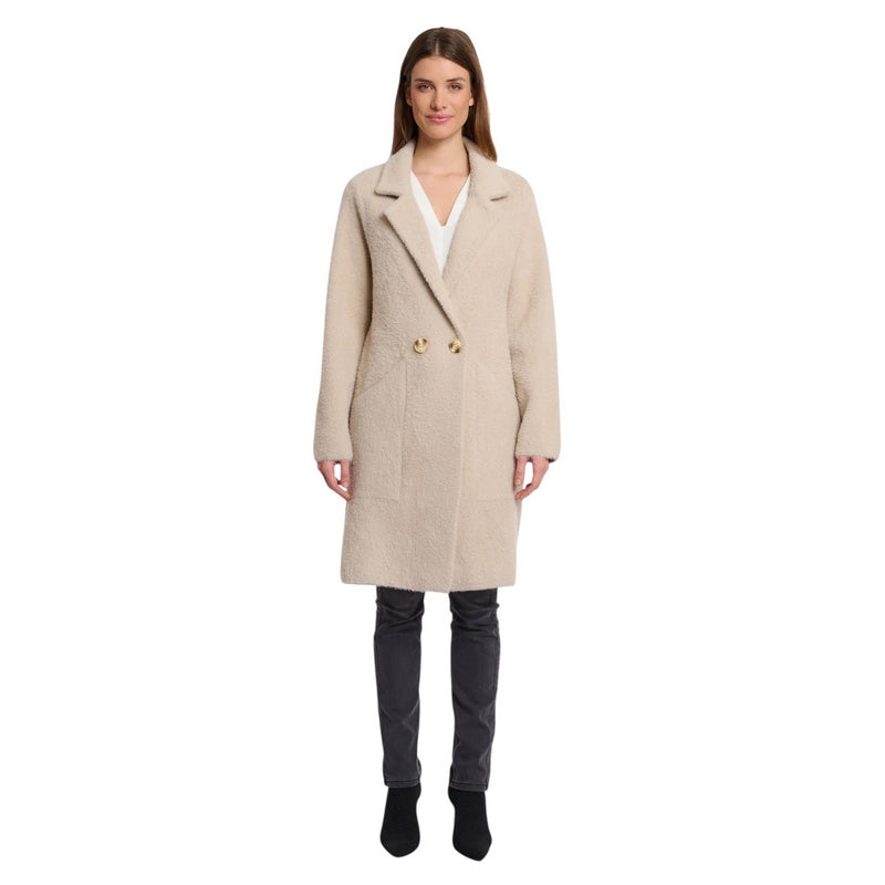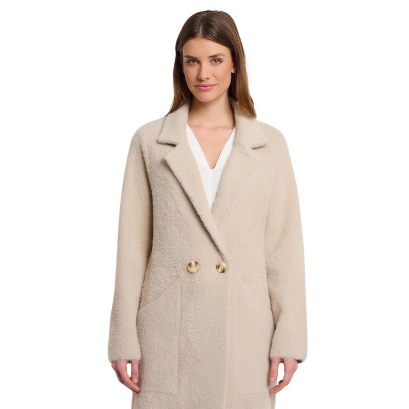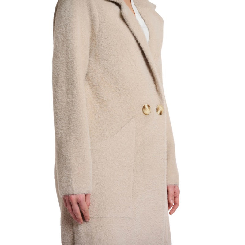 Wrapped in soft, stretchy knit that feels as good as it looks, it's designed to keep you cosy without the bulk. The double-breasted button closure, lapel collar, and practical front pockets make it endlessly wearable – throw it over anything and instantly elevate your look.