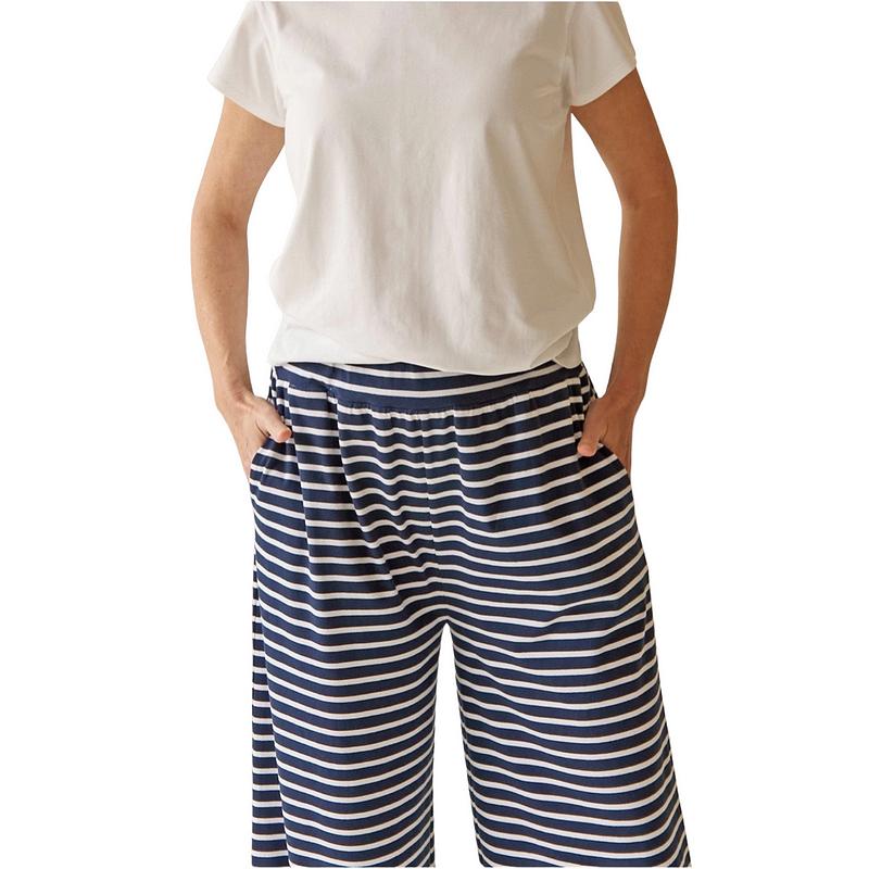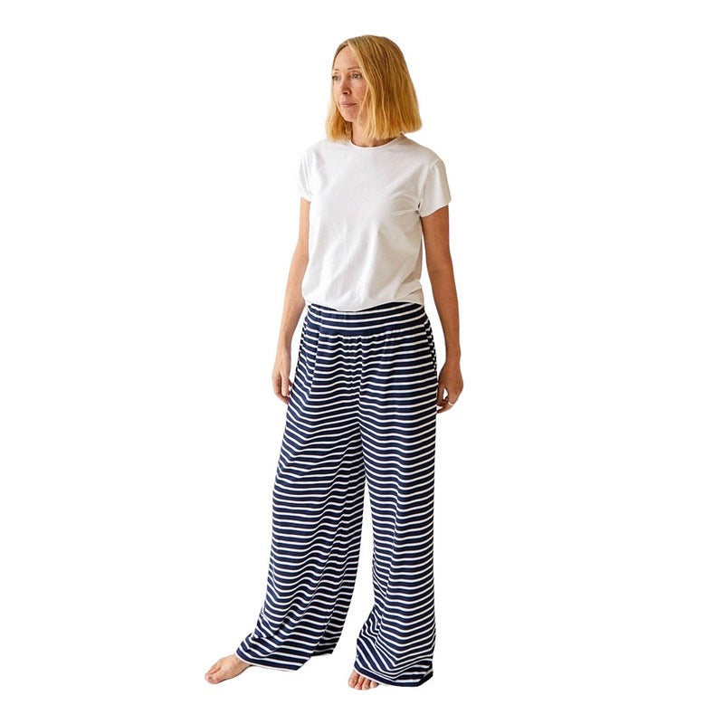 Get ready to look nautical and nice with these Nadine Trousers in Navy & White Stripes! These comfy wide-leg trousers are decorated with flattering stripes, and they have side pockets for added perfection! Comfort Ahoy!
