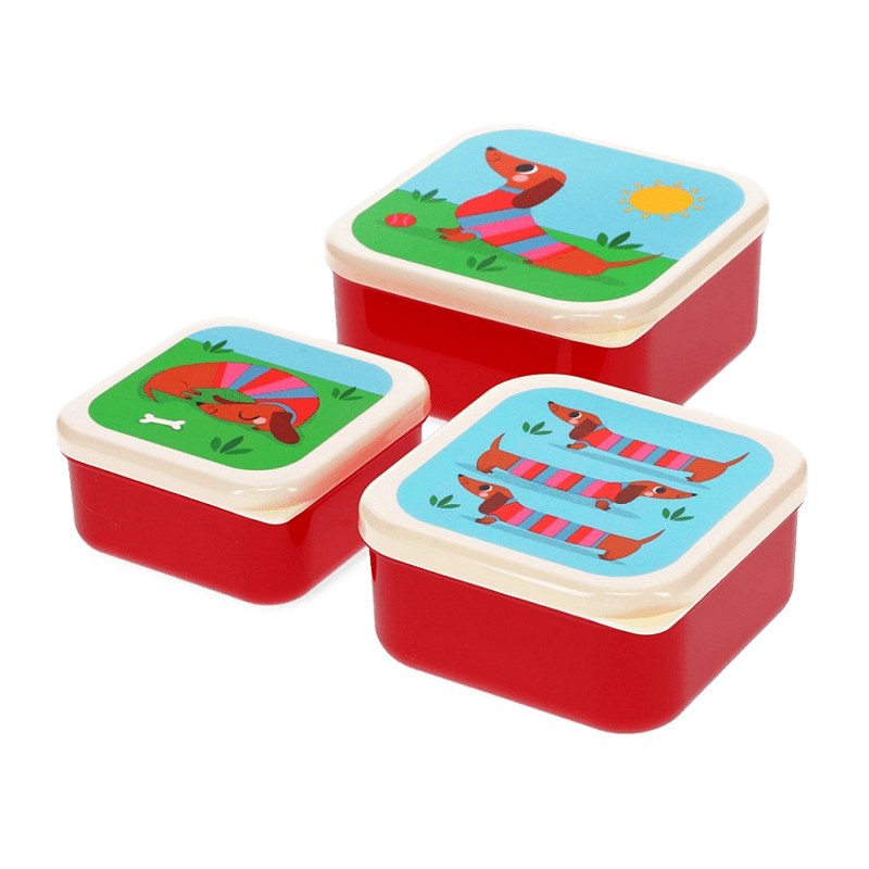 Keep your snacks organised in style with this charming trio of Sausage Dog snack boxes! Each box is a different size, so you can pack everything from juicy fruit and crunchy crackers to cheese cubes and mini sandwiches.