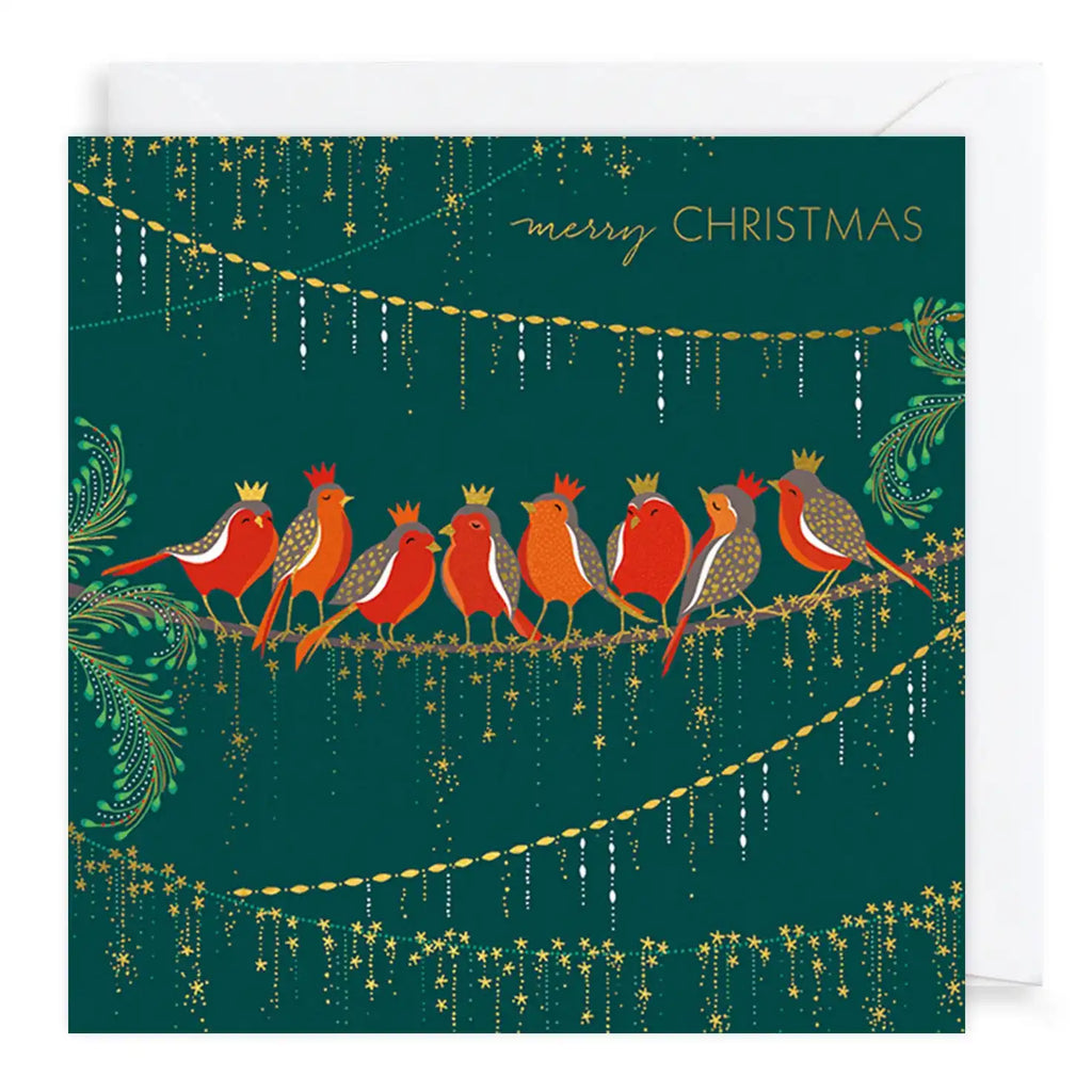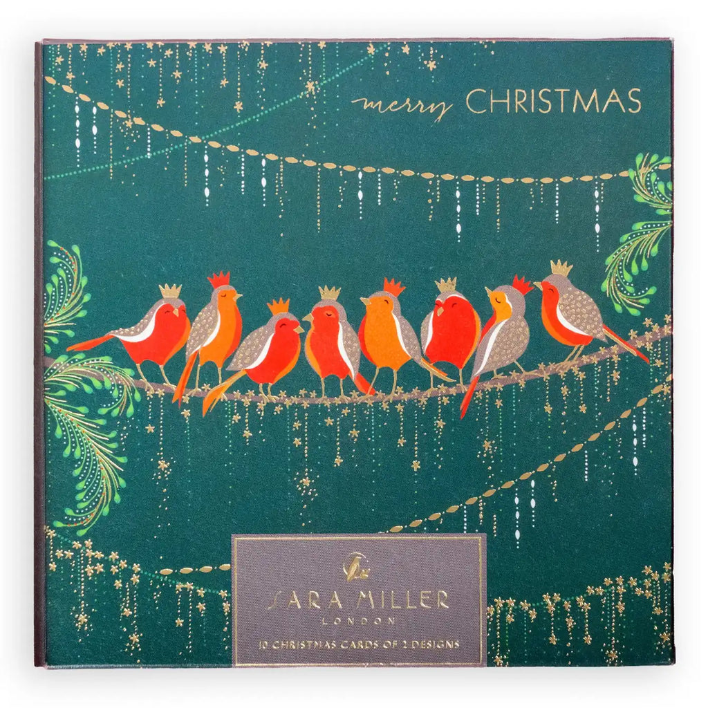 Make the festive season even brighter with this 10 pack of luxury Xmas cards featuring robins perched on vibrant green trees and strings of twinkling lights. With two eye-catching designs to choose from, you're sure to spread cheer this holiday season!